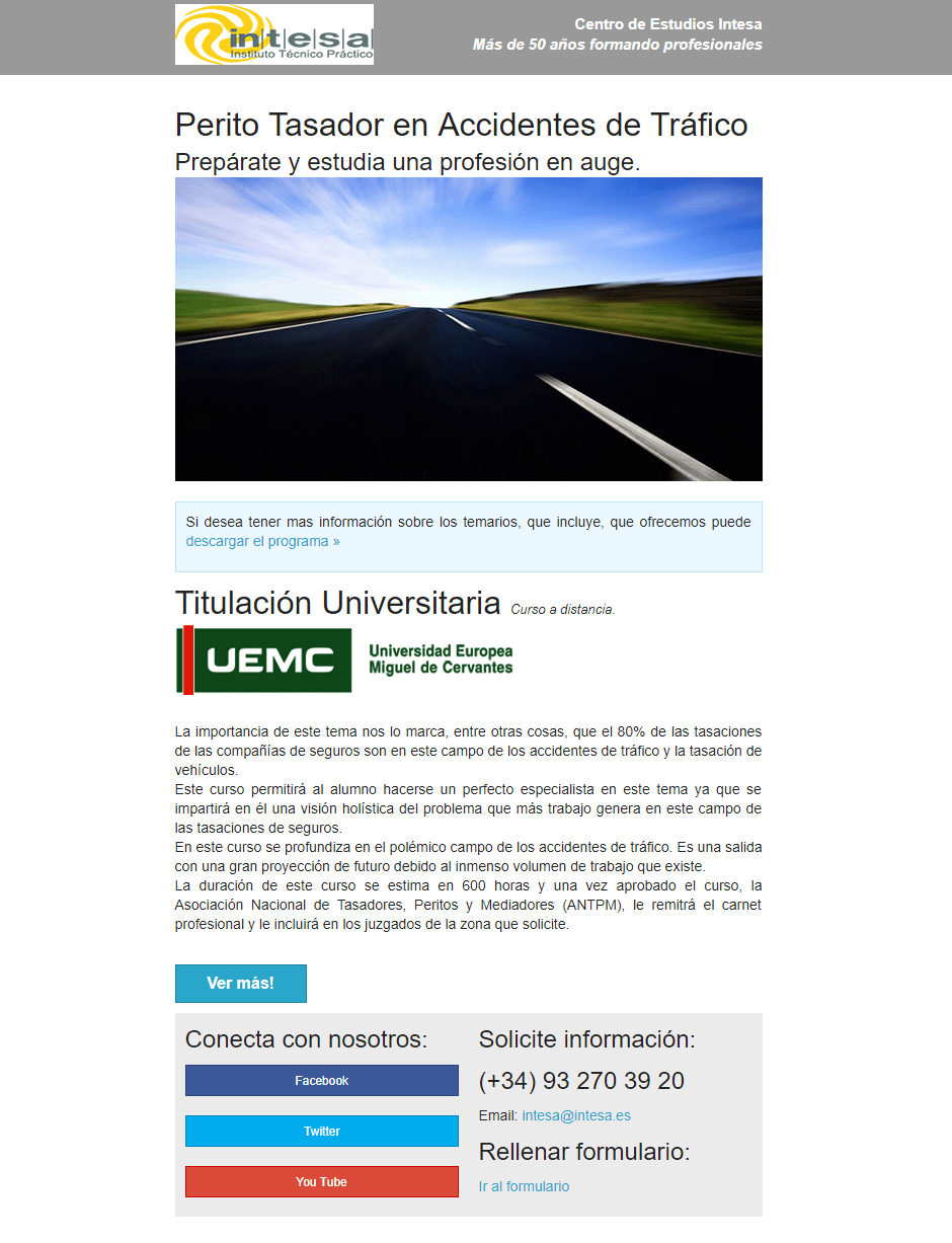 Plantilla email curso tasador tráfico