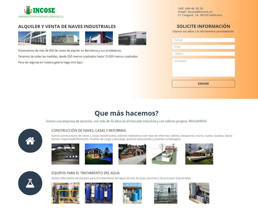Página diseñada en HTML5 | JS para empresa de Ingeniería, alquiler y venta de naves, Contrucción y Reformas, Tratamiento de aguas. Empresa úbicada en Barcelona (España).