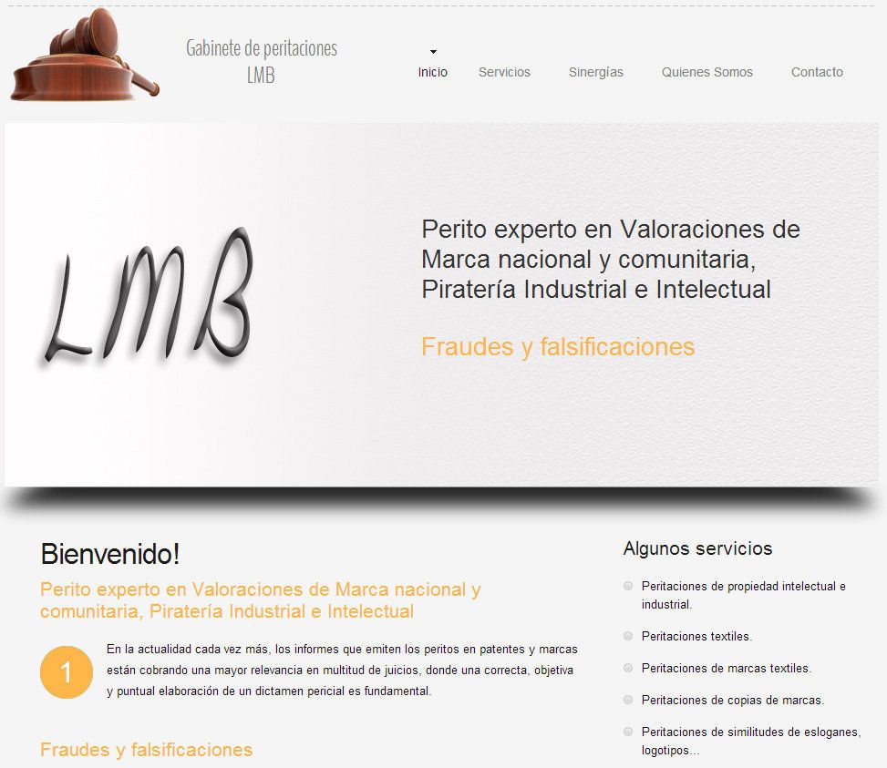 Página diseñada en HTML para empresa de Peritaje en Piratería Intelectual e Industrial. El trabajo ha sido compuesto para dar información en internet y la solicitud de informes para juzgados.