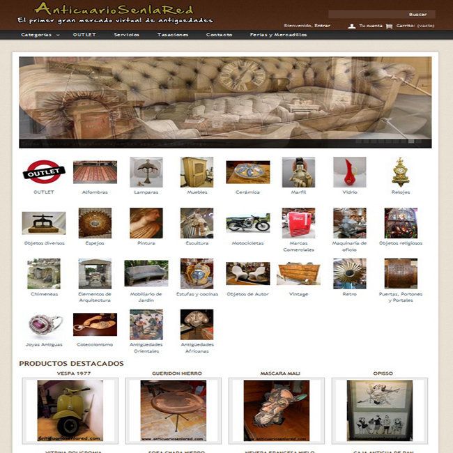 Página diseñada en CMS Prestashop 1.5 para venta en antigüedades. El trabajo ha sido en colaboración con otro equipo. El proyecto consta en venta directa de productos antiguos como mobiliario, joyas, arte y otros productos de época.
